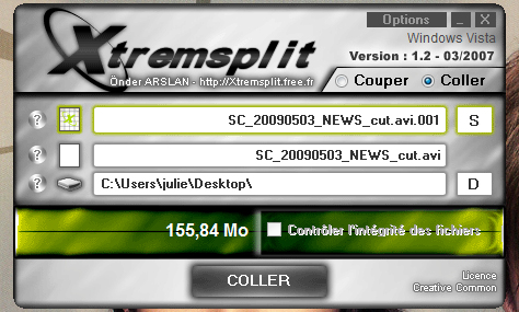 3. Vérifiez que la taille donnée (en l'occurence, 155,84Mo) ne vous paraît pas aberrante par rapport aux tailles des fichiers coupés, puis cliquez sur "Coller".